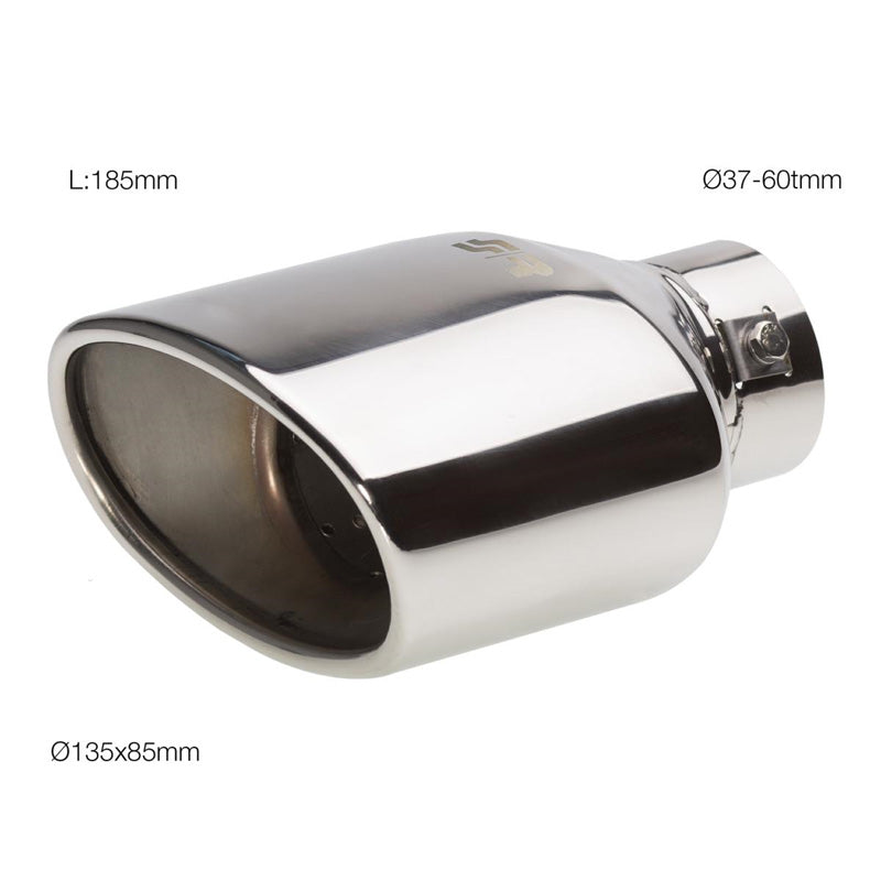 Simoni Racing, Auspuffblende Oval Edelstahl - 135x85xL185mm - Anschluß ->60mm, Inox