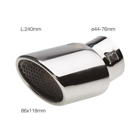 Simoni Racing, Auspuffblende Oval/Schräg Edelstahl - 86x118xL160mm - Anschluß 44->76mm, Inox