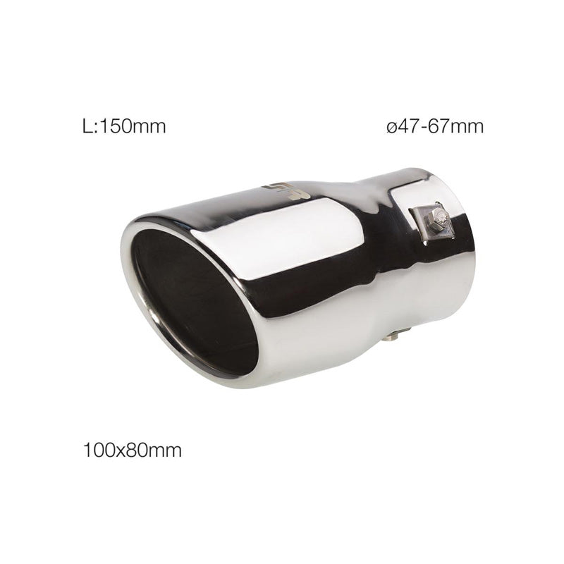 Simoni Racing, Auspuffblende Oval/Schräg Edelstahl - 95x82xL147mm - Anschluß ->65mm, Inox