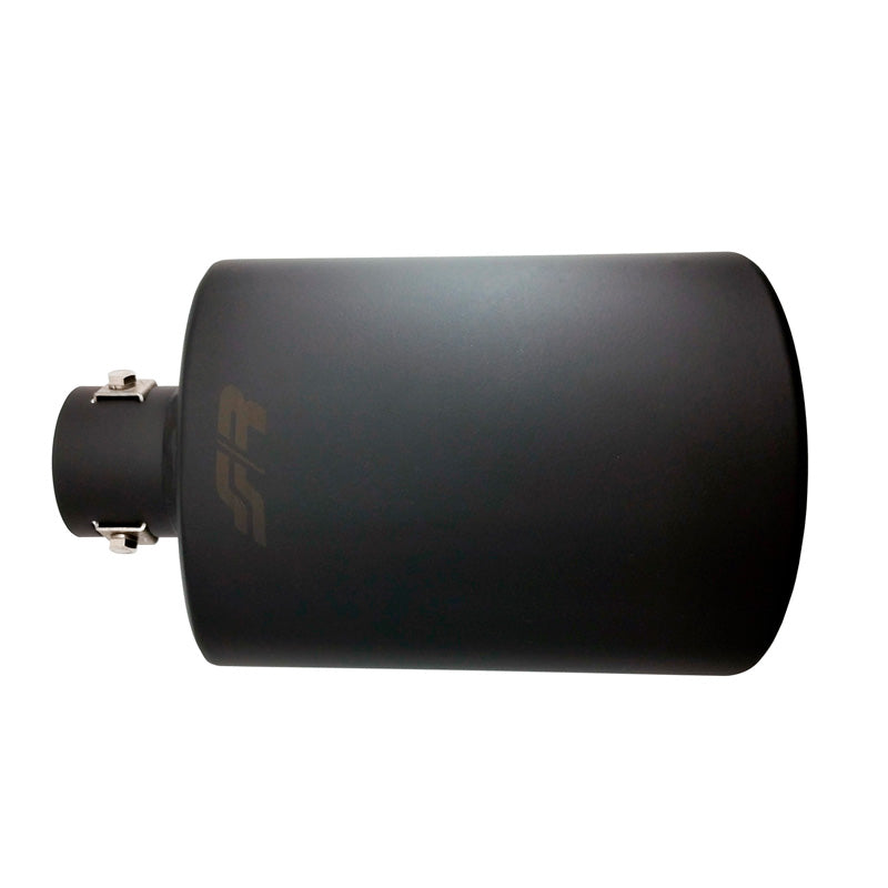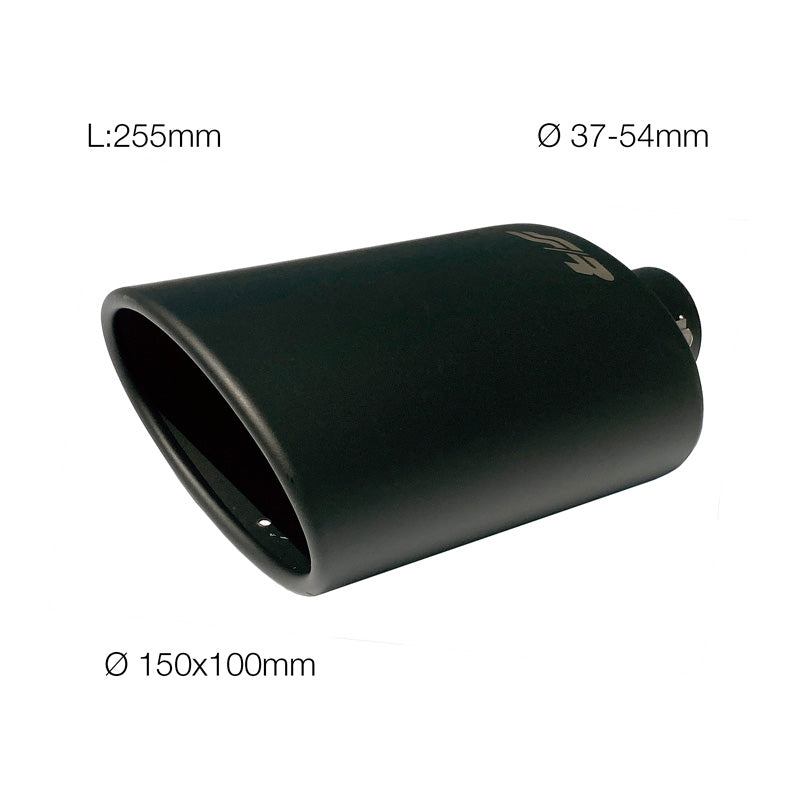 Simoni Racing, Auspuffblende Oval/Schräg Schwarz - 150x100xL255mm - Anschluß ->37-54mm, Edelstahl