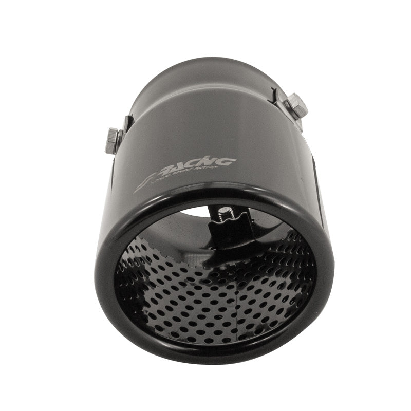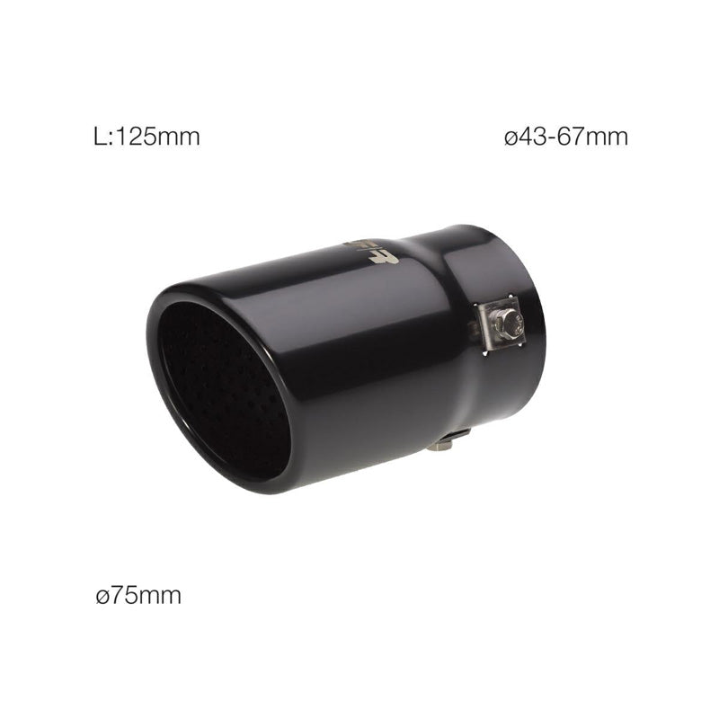 Simoni Racing, Auspuffblende Oval/Schräg Schwarz - 76x80xL128mm - Anschluß ->68mm, Edelstahl
