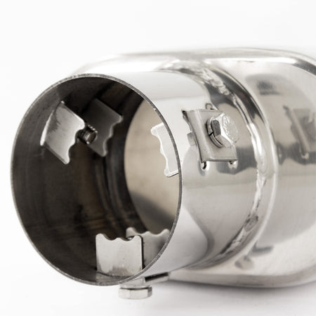 Simoni Racing, Auspuffblende Rechteckig/Schräg Edelstahl - 140x80xL240mm - Anschluß ->57mm, Inox