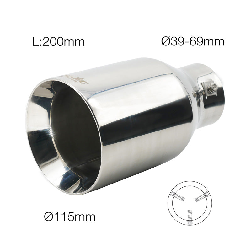 Simoni Racing, Auspuffblende Rund Edelstahl - Ø115xL200mm - Anschluß 39-69mm, Inox