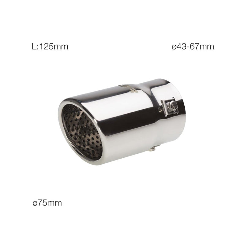 Simoni Racing, Auspuffblende Rund/Schräg Edelstahl - Ø76xL128mm - Anschluß ->68mm, Inox