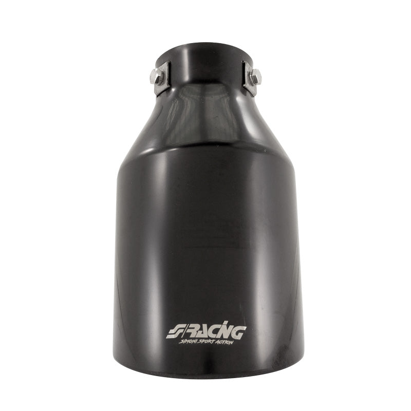 Simoni Racing, Auspuffblende Rund/Schräg Edelstahl Schwarz - Ø115xL210mm - Anschluß 38-63mm