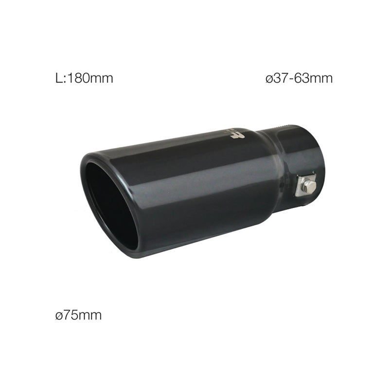 Simoni Racing, Auspuffblende Rund/Schräg Edelstahl Schwarz - Ø76xL180mm - Anschluß ->64mm