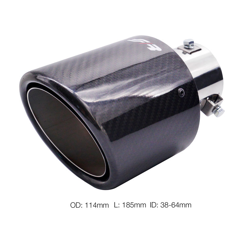 Simoni Racing, Auspuffblende Rund/Schräg Glänzend-Karbon+Edelstahl - Ø114xL185mm - Anschluß 38-63mm, Carbon, Edelstahl, Carbon, Inox