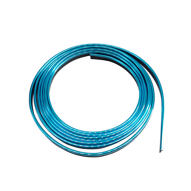 Chrome dekorationstrim til bilens interiør, designet til at give et moderne og elegant udseende. Denne 3 meter lange blå trim passer perfekt ind i rillerne på dashboardet, midterkonsollen eller dørene. Installationen er enkel og kræver ikke brug af lim eller klæbemidler. Du skal blot indsætte trimmen i rillen og anvende tryk for at sikre den på plads.