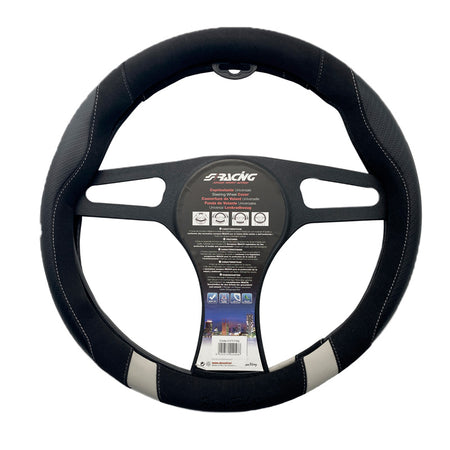 Simoni Racing, Lenkradbezug Good Vibe G - Schwarz Ökoleder/Mikrofaser/Karbonoptik + Graue Einsätze - 37-39cm, Kunstleder, Microfiber