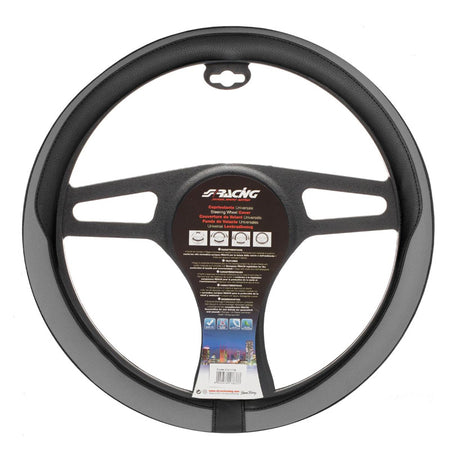 Simoni Racing, Lenkradbezug Tidy - Schwarz/Grau Ökoleder - 37-39cm, Textil, Grau, Schwarz
