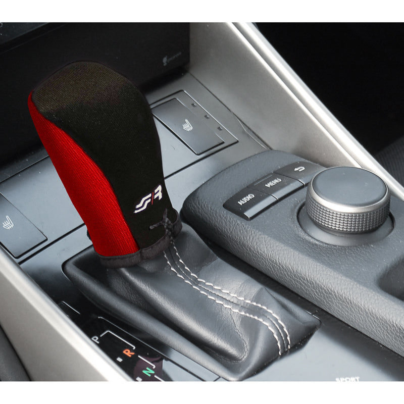 Simoni Racing, Schaltknauf Hülle Universal - Schwarz/Rot + Logo, Microfiber, Rot, Schwarz