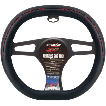 Simoni Racing Steering Wheel Cover F&F - Black Ecoleather + Red Stitching - 37-39cm - Square Shape