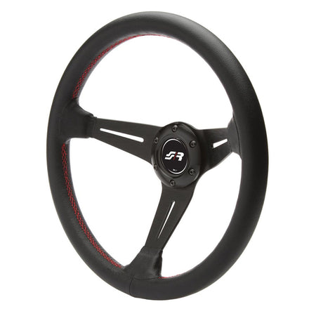 Simoni Racing, Universal Lenkrad Class - Schwarz Leder + Rote Nähte - Durchmesser 350mm, Rot, Schwarz