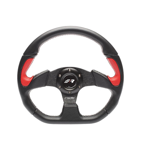 Simoni Racing, Universal Lenkrad X2 Poly Pelle - Schwarz Ökoleder/Rot - Durchmesser 330mm, Leder, Rot, Schwarz