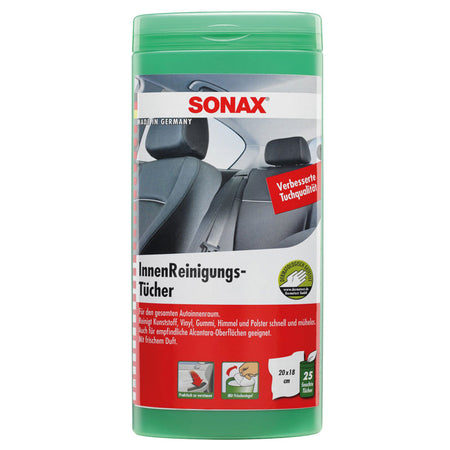 Die Sonax Innenreinigungstücher sind die ideale Lösung, um alle Oberflächen im Innenraum Ihres Fahrzeugs gründlich zu reinigen. Egal ob Cockpit, Türverkleidungen, Sitze, Polsterungen oder Vinyl – diese Tücher bieten eine effektive und einfache Reinigung.