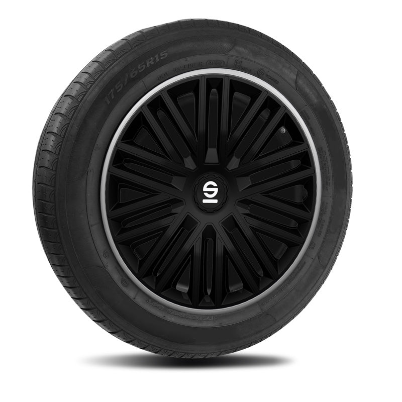 Sparco, Radzierblenden Bergamo - 15-Zoll - Schwarz/Grau - Satz mit 4 Stück, ABS, Grau, Schwarz