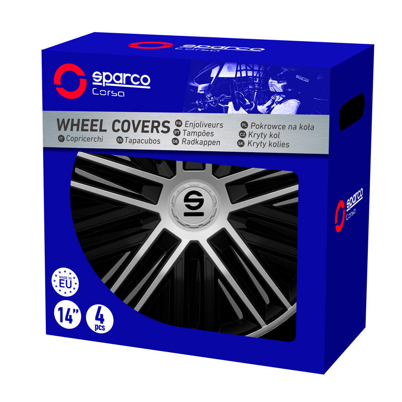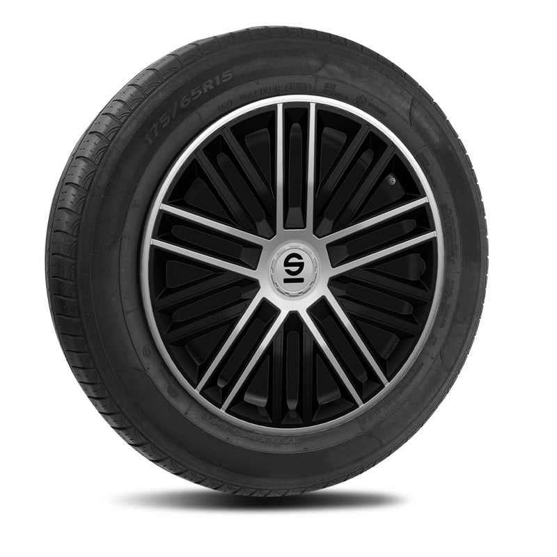 Sparco, Radzierblenden Bergamo - 16-Zoll - Schwarz/Silber - Satz mit 4 Stück, ABS, Silber, Schwarz