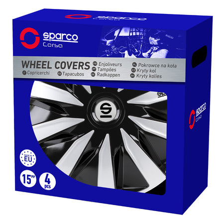 Sparco, Radzierblenden Lazio - 15-Zoll - Schwarz/Silber - Satz mit 4 Stück, ABS, Silber, Schwarz