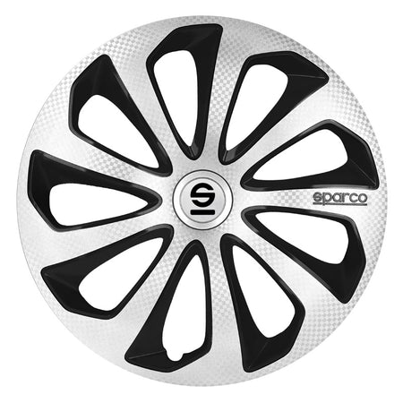 Sparco, Radzierblenden Sicilia - 14-Zoll - Silber/Schwarz/Karbon - Satz mit 4 Stück, ABS, Carbon, Silber, Schwarz