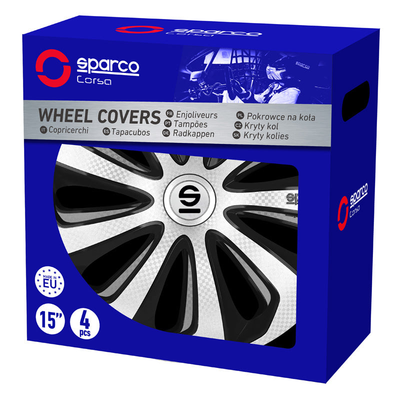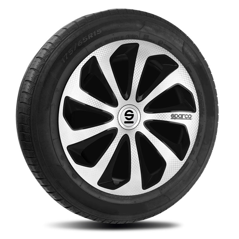 Sparco, Radzierblenden Sicilia - 16-Zoll - Silber/Schwarz/Karbon - Satz mit 4 Stück, ABS, Carbon, Silber, Schwarz