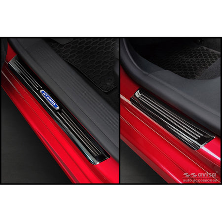 Avisa, Spiegelschwarz Edelstahl Einstiegsleisten passend für Opel Astra (L) Hatchback 2021- & Opel Astra (L) Sports Tourer 2021- Hybrid - 4-teilig, Blau, Chrom, Schwarz