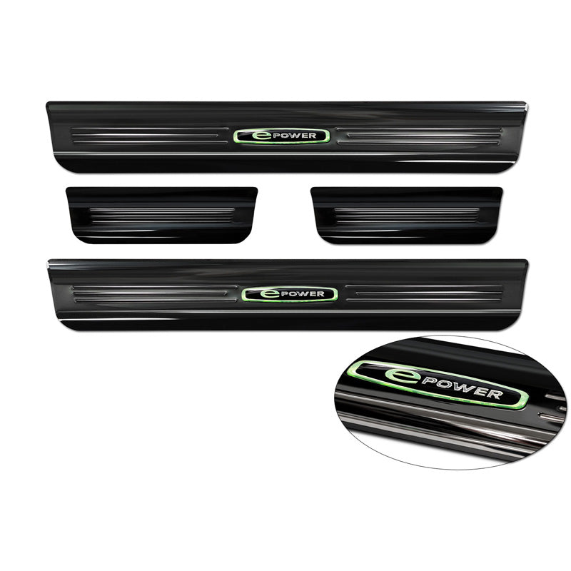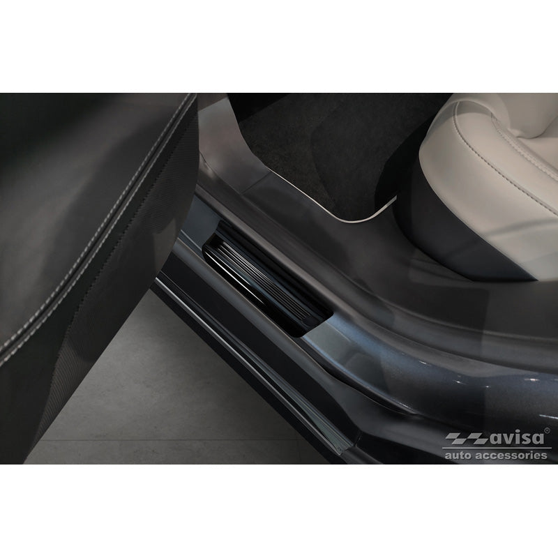 Avisa, Spiegelschwarz Edelstahl Einstiegsleisten passend für Tesla Model S 2012-2016 & Facelift 2016- E-Power - 4-teilig, Grün, Inox, Schwarz