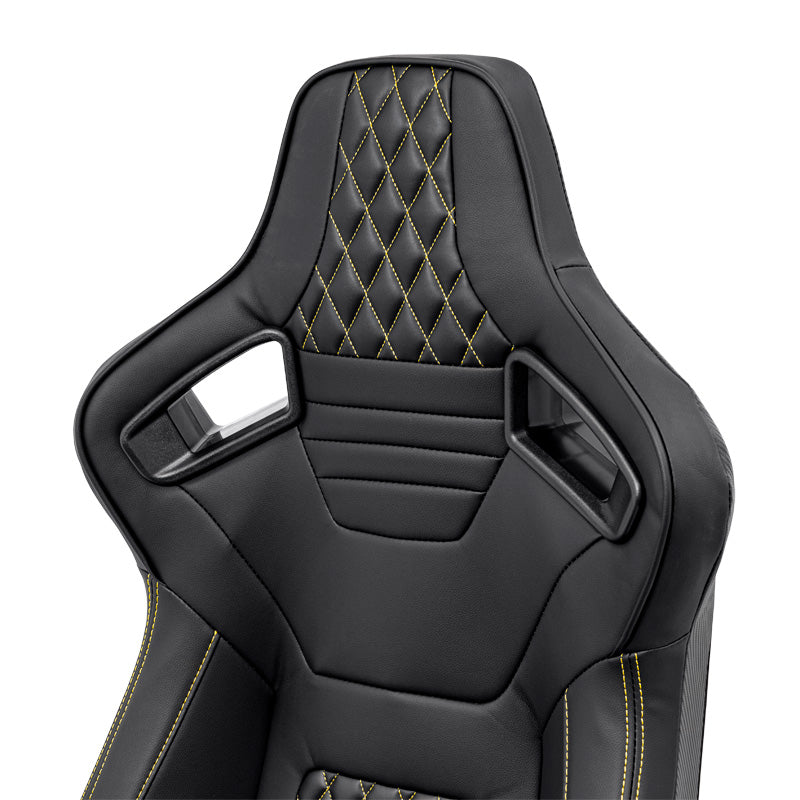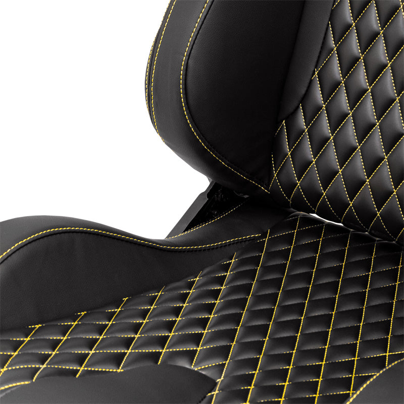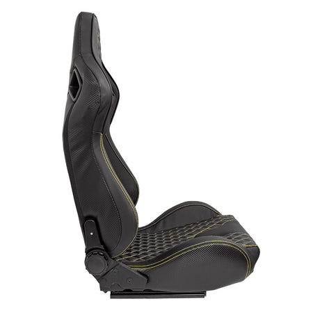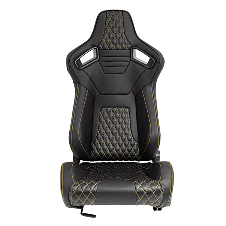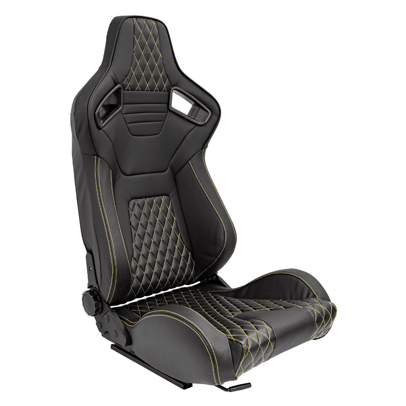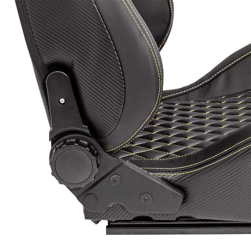 AutoStyle, Sportsitze AK - Schwarz Kunstleder + Gelbe Naten - Doppelseitig Verstellbare Rückenlehne - inkl. Laufschienen, Gelb, Schwarz