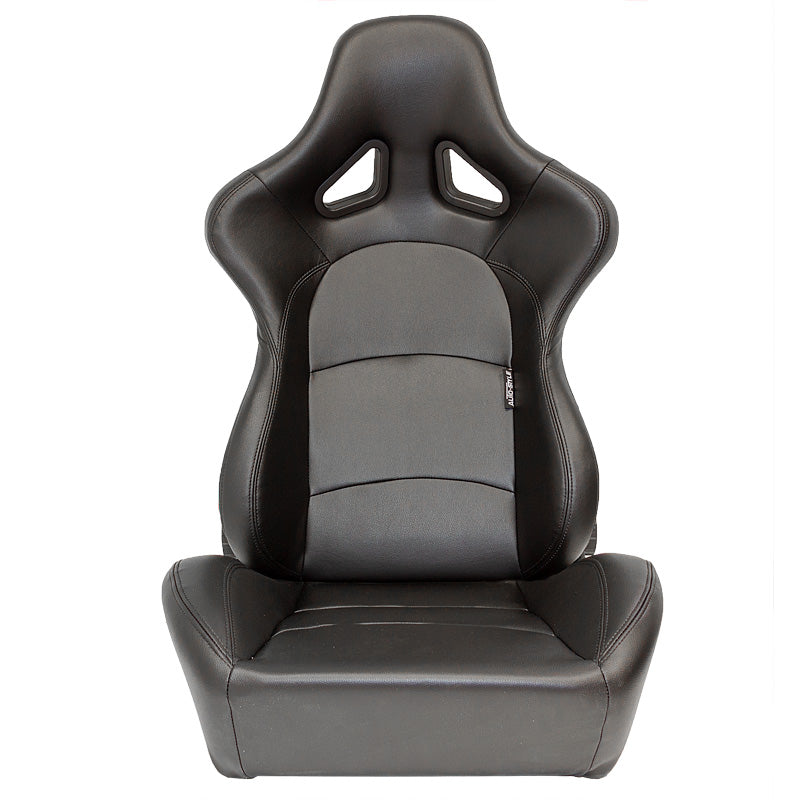 AutoStyle, Sportsitze BS2 - Schwarz Kunstleder - Doppelseitig Verstellbare GFK Rückenlehne - inkl. Laufschienen, GFK, Kunstleder