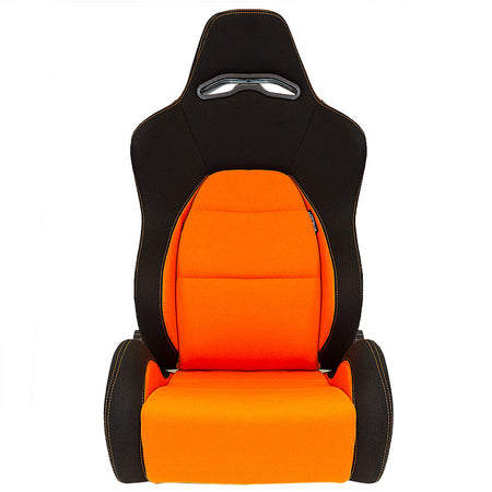 AutoStyle, Sportsitze Eco - Schwarz/Orange - Doppelseitig Verstellbare Rückenlehne - inkl. Laufschienen, Textil, Orange, Schwarz