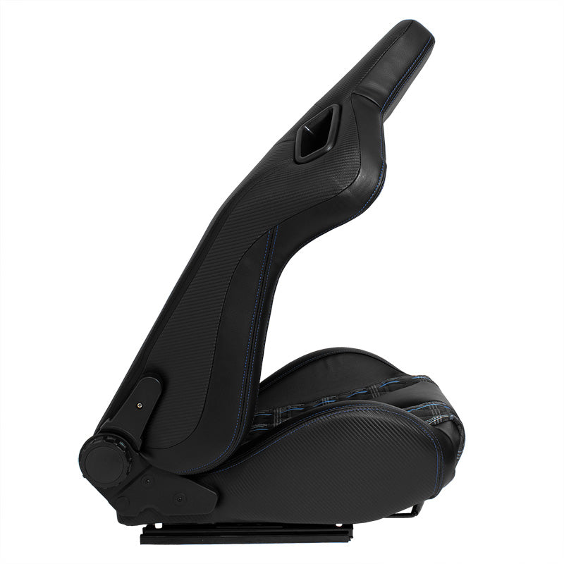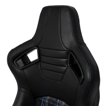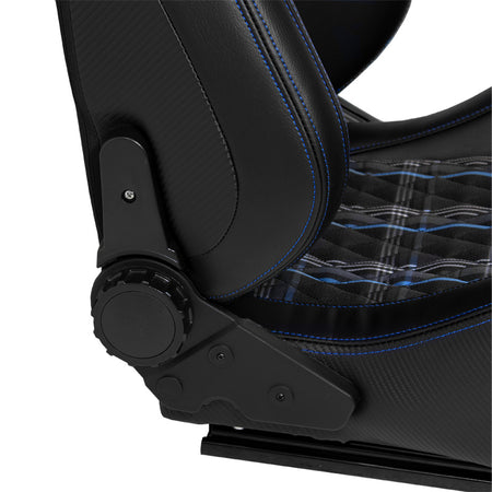 AutoStyle, Sportsitze GT - Schwarz Kunstleder + Stoff in Blau Karomuster + Blaue Naten - Doppelseitig Verstellbare Rückenlehne - inkl. Laufschienen, Kunstleder, Textil, Blau, Grau, Weiss, Schwarz