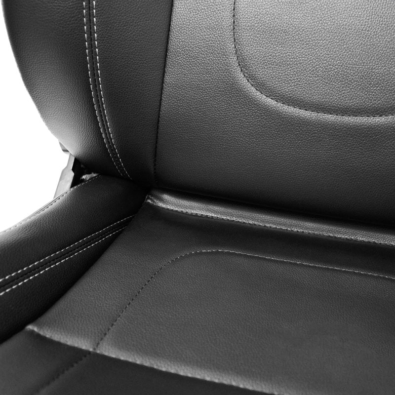 Das strapazierfähige Kunstleder sorgt dafür, dass die Sitze auch bei intensiver Nutzung lange halten und dabei ihre ansprechende Optik bewahren. Die Kombination aus Schwarz und Silber verleiht Ihrem Auto einen sportlichen Look, der garantiert Blicke auf sich zieht.