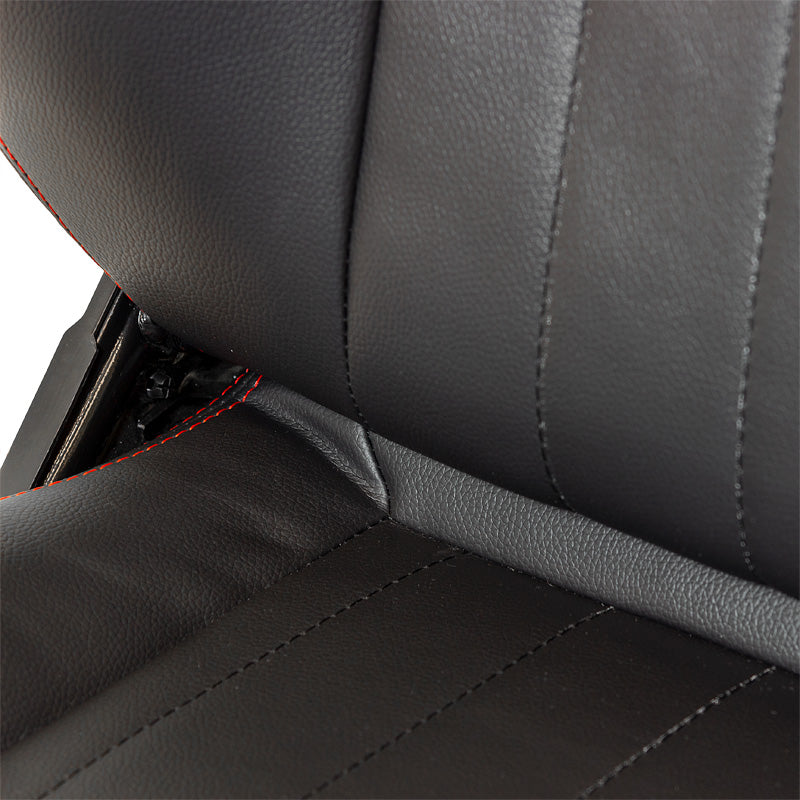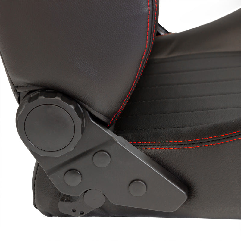 AutoStyle, Sportsitze Retro - Schwarz Kunstleder + Rote Naten - Doppelseitig Verstellbare Rückenlehne - inkl. Laufschienen, Rot, Schwarz