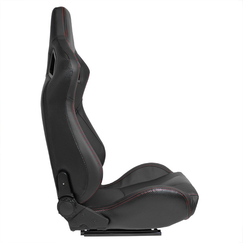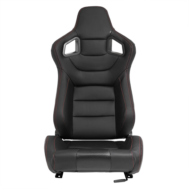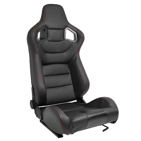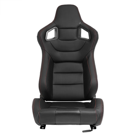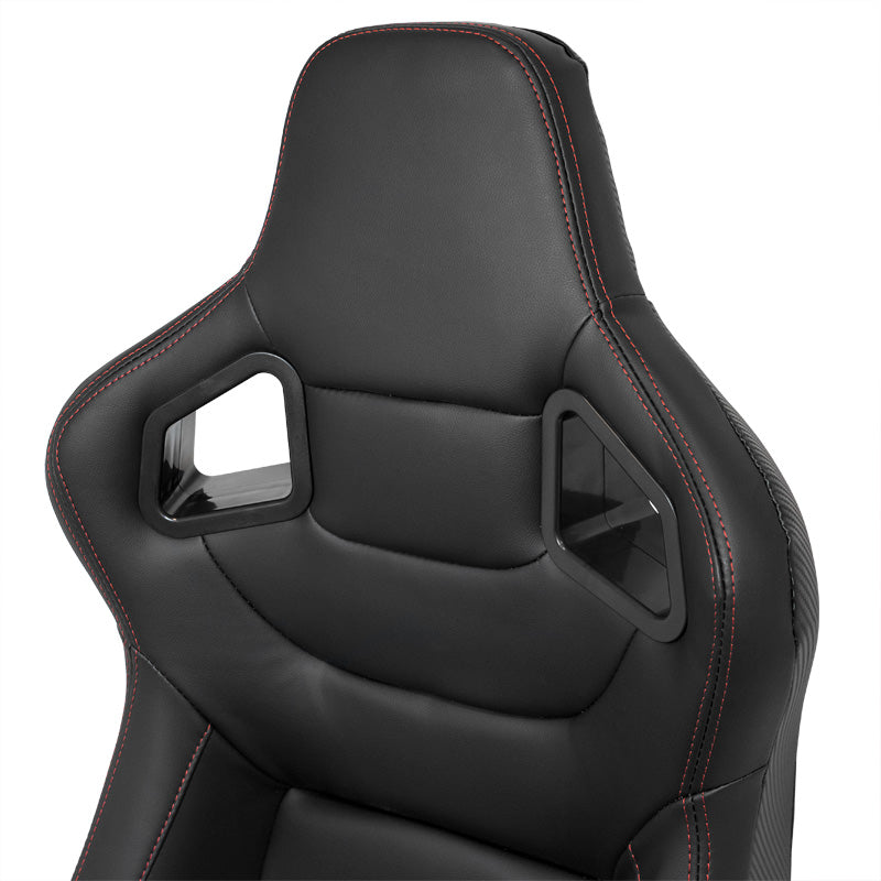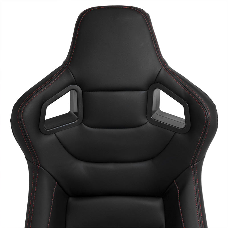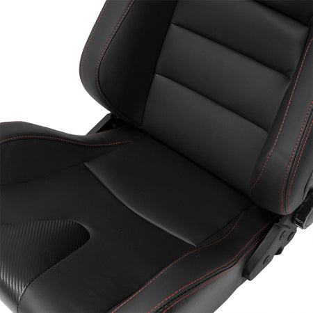 AutoStyle, Sportsitze RK - Schwarz Kunstleder + Rote Naten - Doppelseitig Verstellbare Rückenlehne - inkl. Laufschienen, Rot, Schwarz