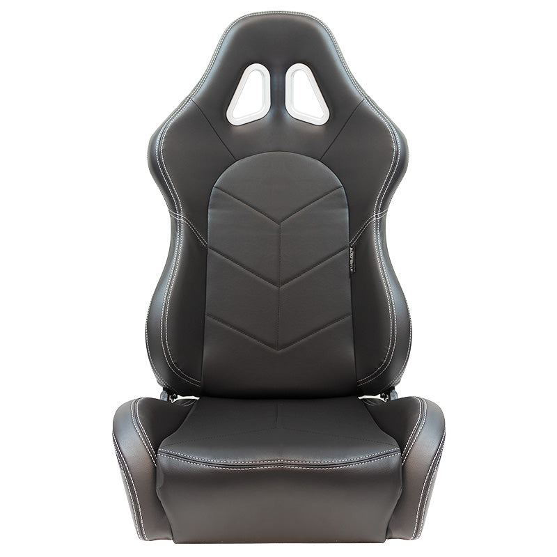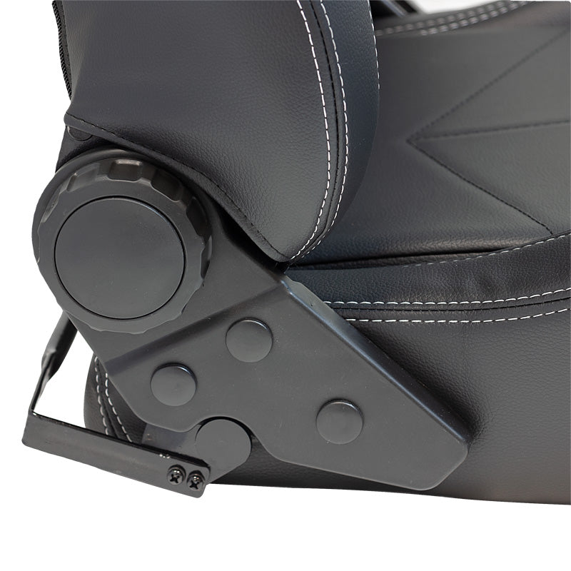 AutoStyle, Sportsitze TN - Schwarz Kunstleder + Silbere Naten - Doppelseitig Verstellbare Rückenlehne - inkl. Laufschienen, Silber, Schwarz