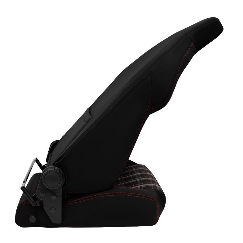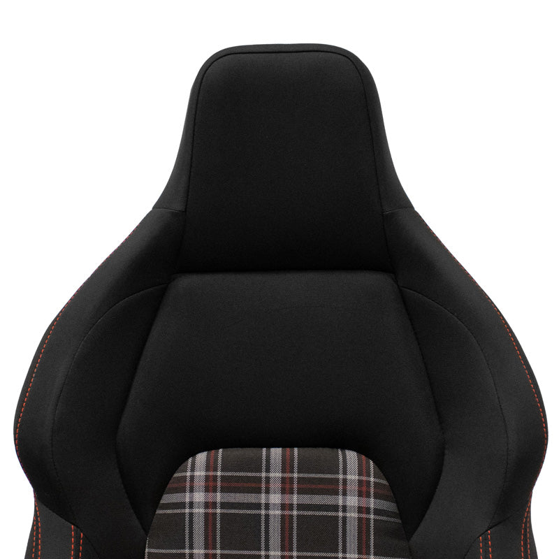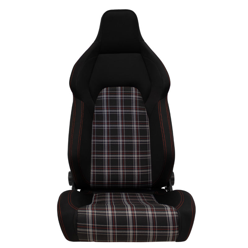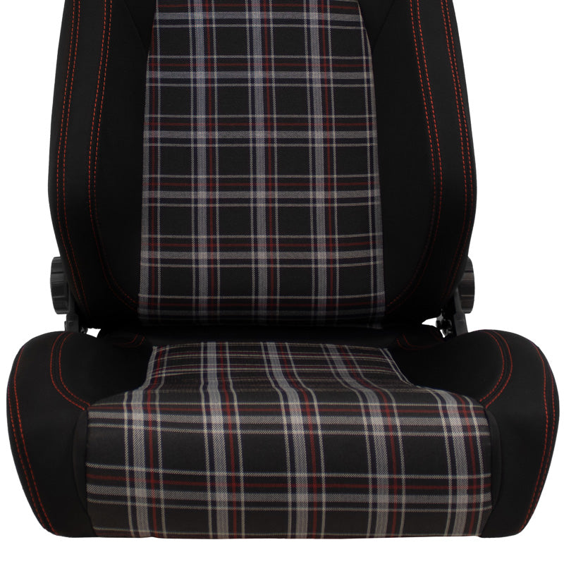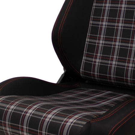 AutoStyle, Sportsitze VGR - Schwarz Stoff + Stoff in Rot Karomuster + Rote Naten - Doppelseitig Verstellbare Rückenlehne - inkl. Laufschienen, Textil, Grau, Rot, Weiss, Schwarz