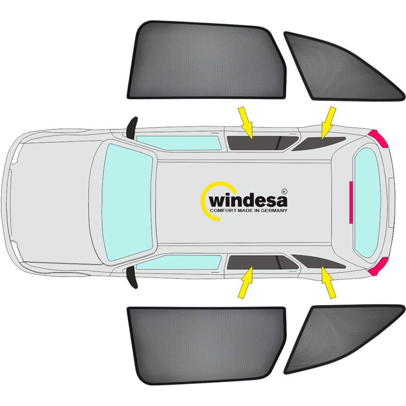 - Premium sunshade panels for all windows from the B-pillar onwards, without rear window section