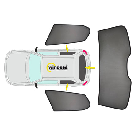 - Premium sunshade panels for all windows from the B-pillar onwards, rear window section made from one piece