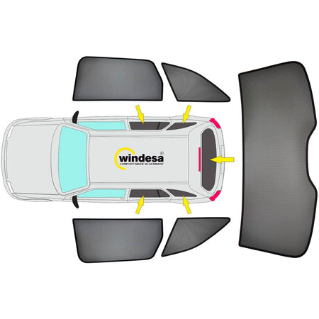 - Premium sunshade panels for all windows from the B-pillar onwards, rear window section made from one piece
