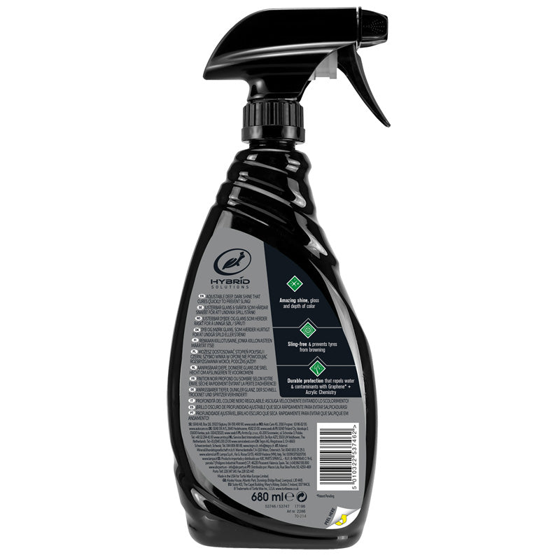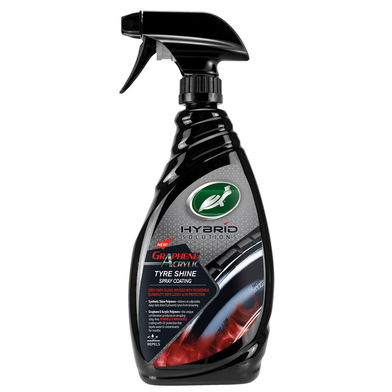 Entdecken Sie die neueste Innovation von Turtle Wax in der Hybrid Solutions Linie mit dem Turtle Wax 53746 Hybrid Solutions Graphene Acrylic Tyre Shine Spray Coating 680ml. Diese spezielle Formel sorgt für einen tiefen, dunklen Glanz und bietet gleichzeitig langanhaltenden Schutz für Ihre Reifen.