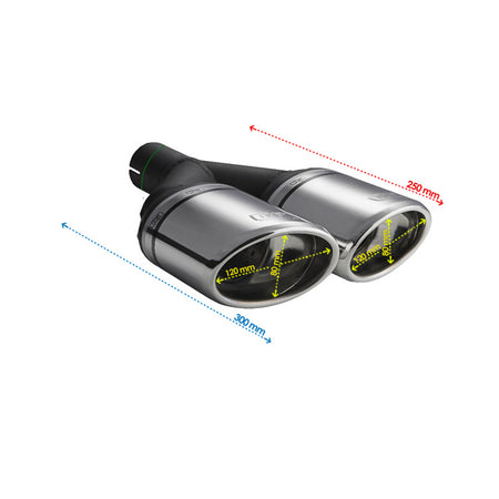 Ulter Sport, Endrohr - Doppel Oval 120x80mm Schräg - Länge 250mm - Montage ->50mm - Edelstahl, Inox