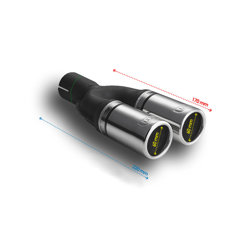 Ulter Sport, Endrohr - Doppel Rund Ø60mm - Länge 170mm - Montage ->50mm - Edelstahl, Inox