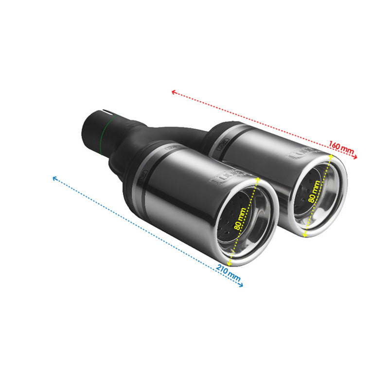 Ulter Sport, Endrohr - Doppel Rund Ø80mm - Länge 160mm - Montage ->50mm - Edelstahl, Inox