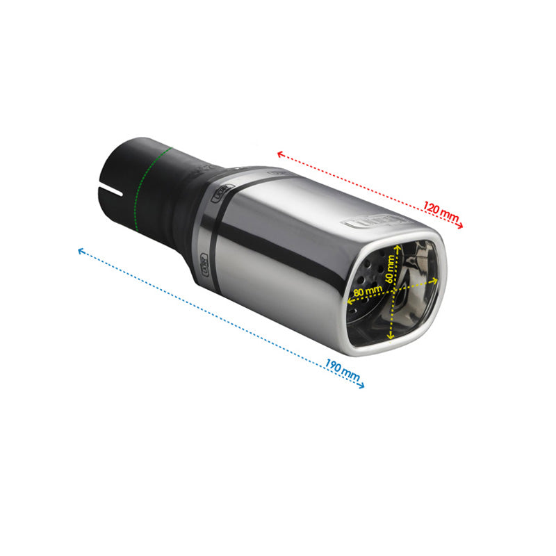 Ulter Sport, Endrohr - Eckig 80x65mm - Länge 120mm - Montage ->50mm - Edelstahl, Inox