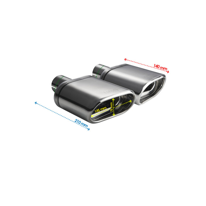 Ulter Sport, Endrohr (Links) - Oval 145x75mm - Länge 140mm - Montage ->50mm - Edelstahl, Inox