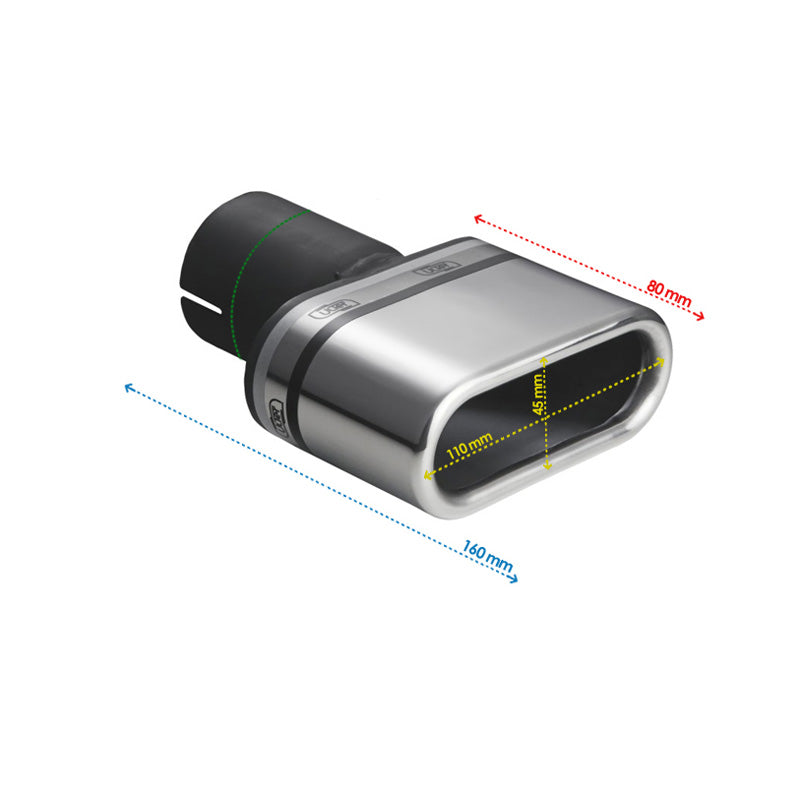 Ulter Sport, Endrohr - Oval 110x45mm - Länge 80mm - Montage ->50mm - Edelstahl, Inox
