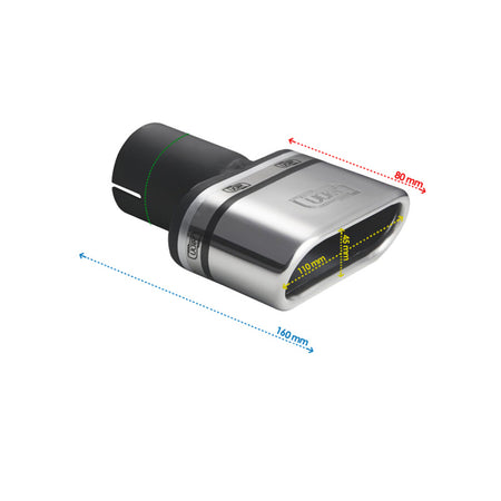 Ulter Sport, Endrohr - Oval 110x45mm Schräg - Länge 80mm - Montage ->50mm - Edelstahl, Inox