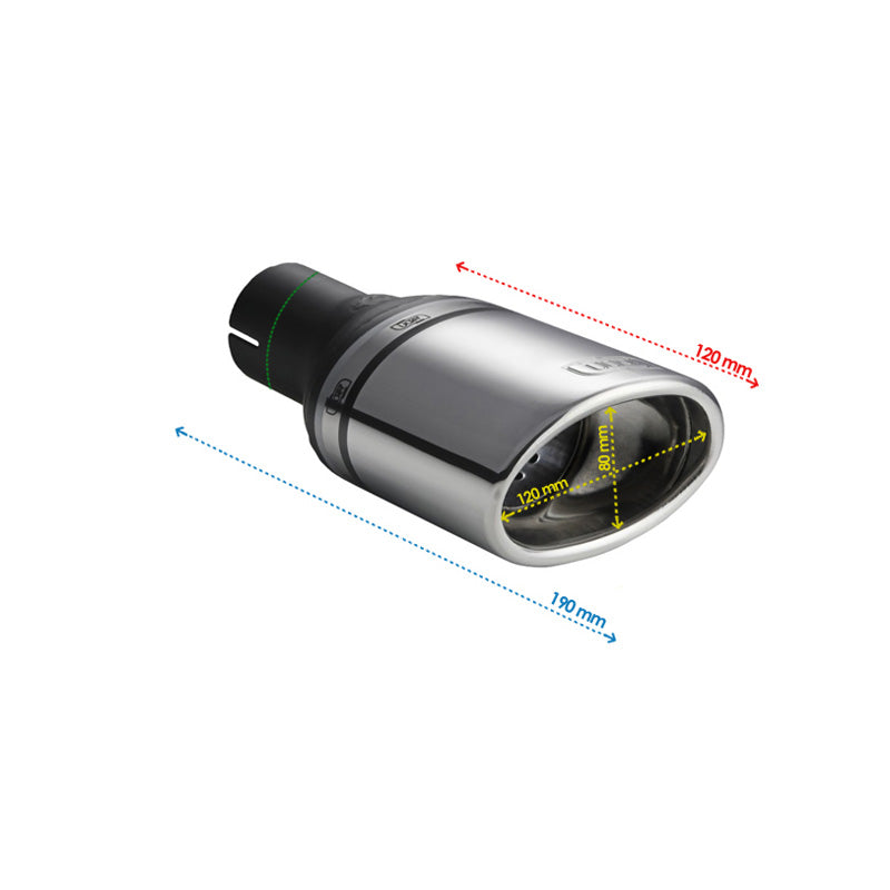 Ulter Sport, Endrohr - Oval 120x80mm Schräg - Länge 120mm - Montage ->50mm - Edelstahl, Inox