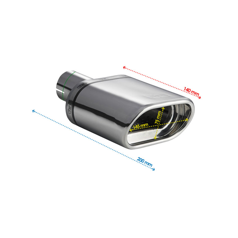 Ulter Sport, Endrohr - Oval 145x75mm - Länge 140mm - Montage ->50mm - Edelstahl, Inox