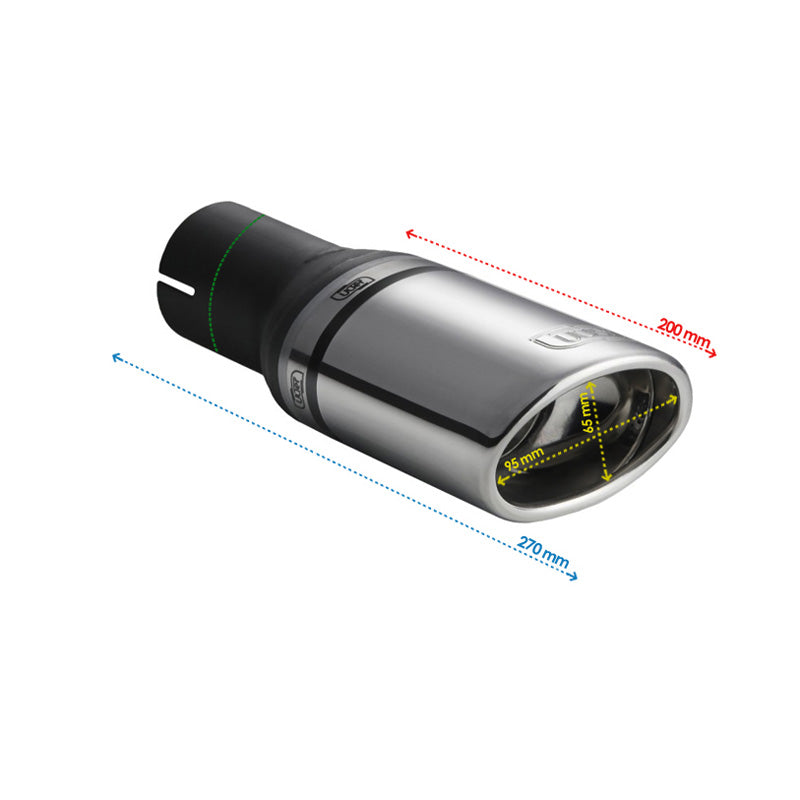 Ulter Sport, Endrohr - Oval 95x65mm Schräg - Länge 200mm - Montage ->50mm - Edelstahl, Inox