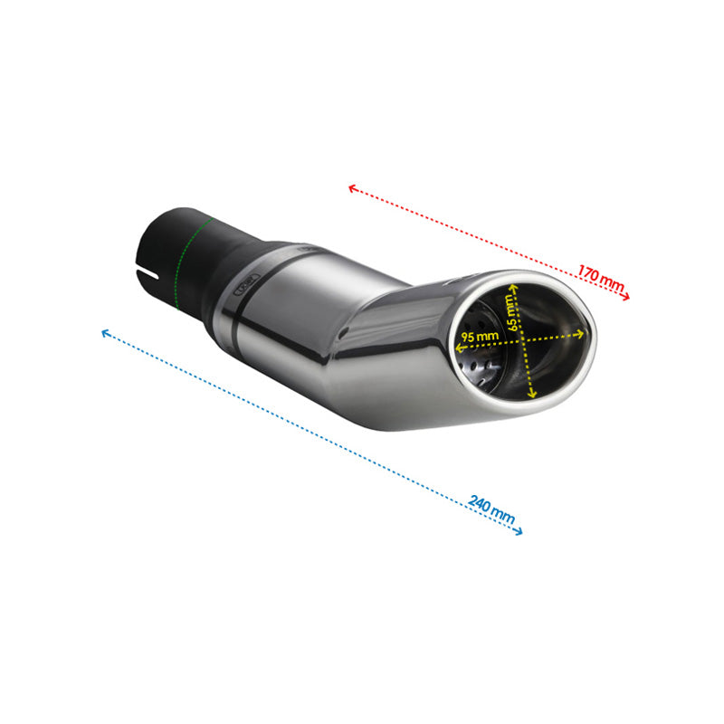 Ulter Sport, Endrohr - Oval DTM 95x65mm - Länge 170mm - Montage ->50mm - Edelstahl, Inox